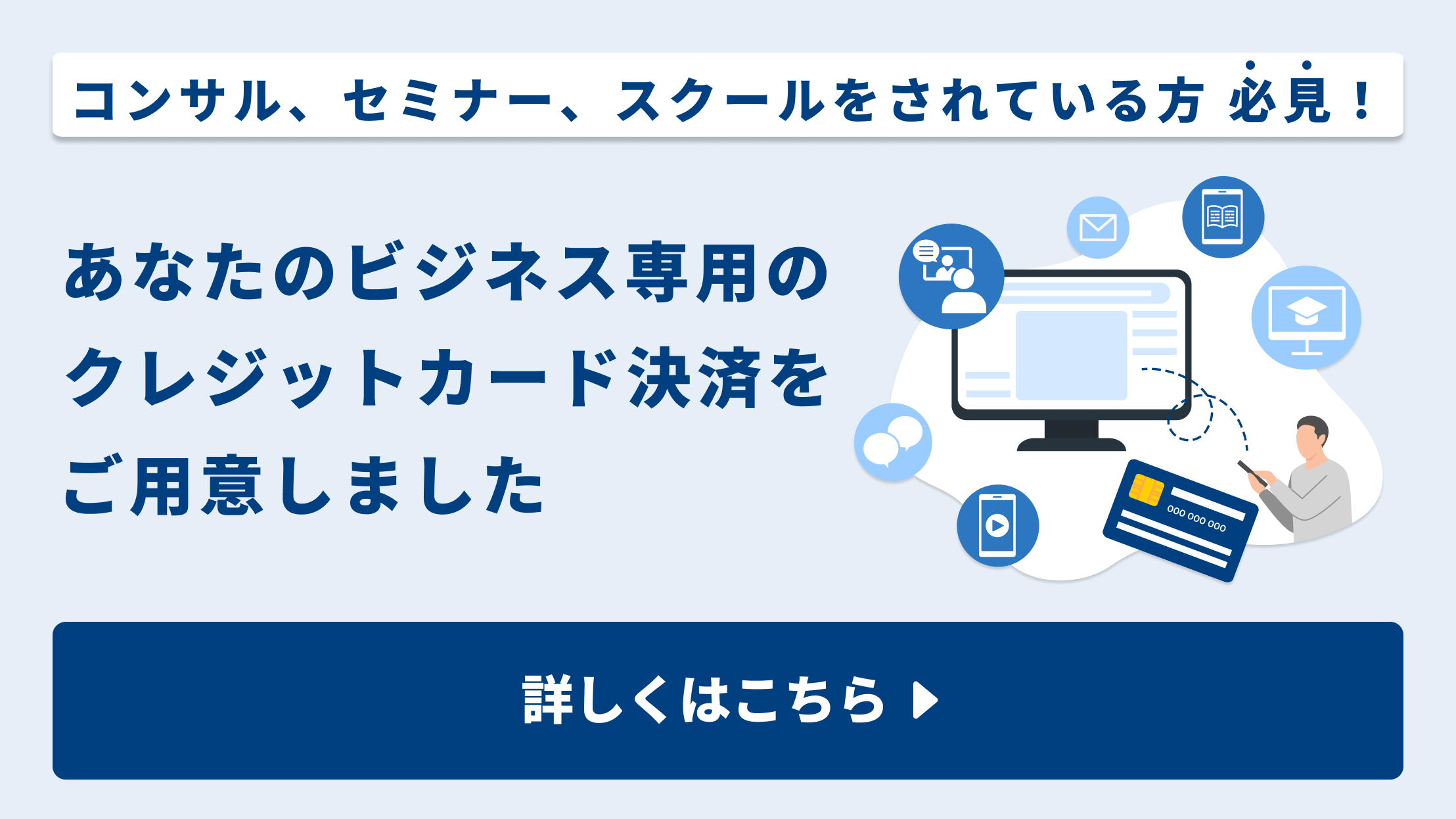 多様な顧客層への対応と成約機会の拡大高額なコンサルティング費用も、クレジットカードの柔軟な分割支払いに対応することで、資金調達の状況に関わらず、より多くの方にサービスを提供できるようになります。これにより、受講機会が広がり、成約に至る可能性を広げることができます。