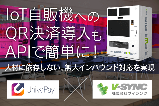 今回のプレスリリースは、株式会社ブイシンク(本社:東京都中央区)のIoT自動販売機「スマートマート」で、訪日中国人客がよく使うモバイルペイメントアプリ、AlipayとWeChat Payの「動的なMPM決済」機能を搭載するにあたり、当社のQR決済APIが採用されたことをお知らせするのが目的です。